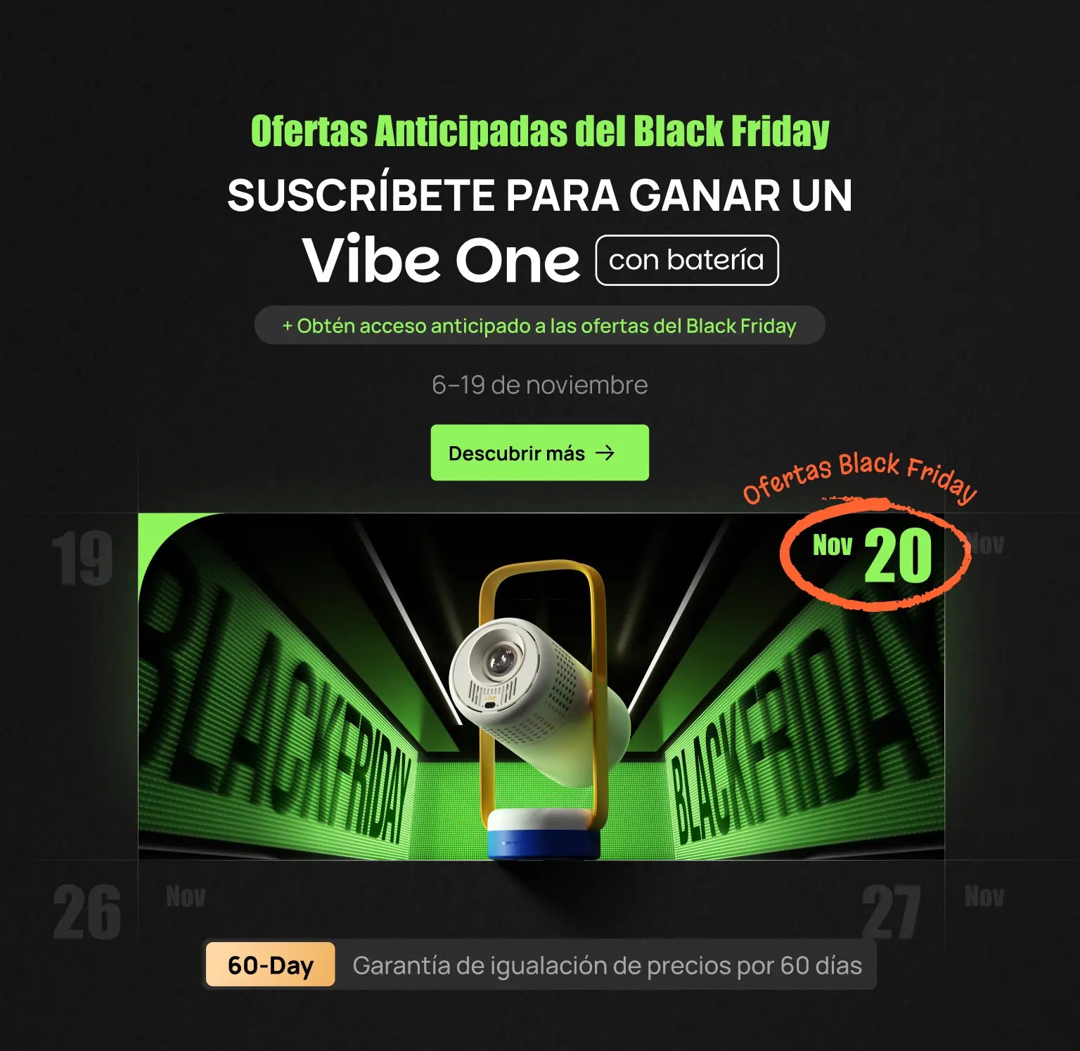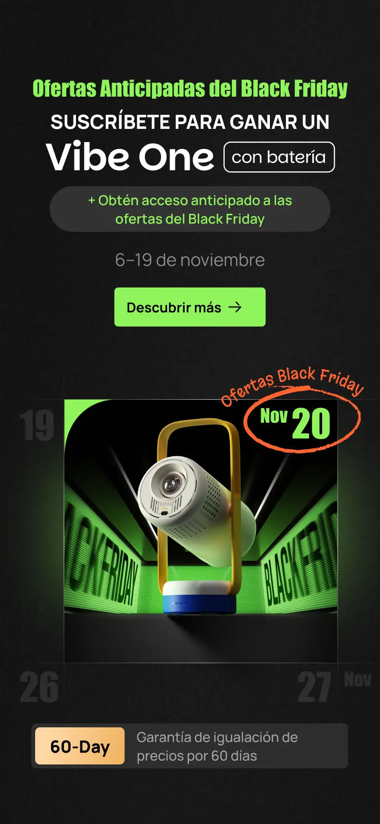 ¡Suscríbete ahora para tener la oportunidad de GANAR un Vibe One (con batería) y obtener acceso exclusivo anticipado a los precios del Black Friday!
