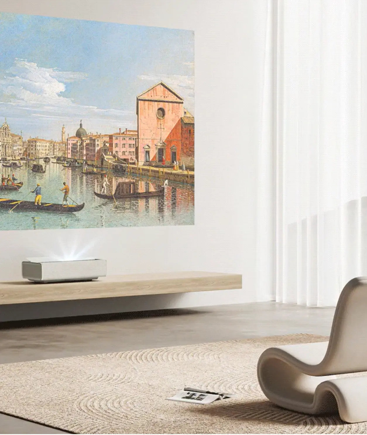 Los proyectores láser de tiro ultracorto de la serie AURA son ideales para espacios reducidos, proyectando una pantalla grande desde solo unos centímetros. Esto conserva la estética del entorno y garantiza una experiencia cinematográfica fluida e inmersiva.