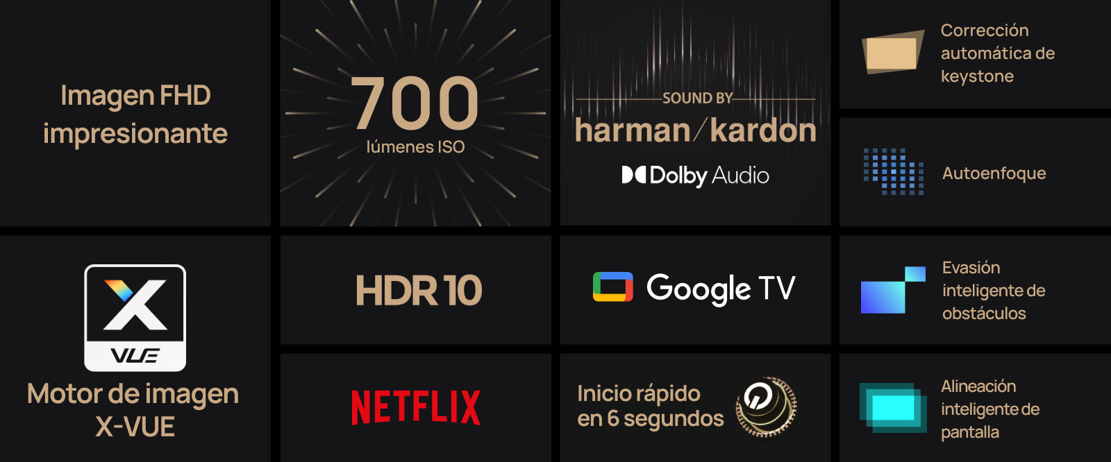 - Adaptación Inteligente de Pantalla: Nuestra avanzada tecnología de Adaptación Inteligente de Pantalla (ISA) simplifica la usabilidad y configuración. Equipado con Corrección Automática de Keystone, Autoenfoque, Alineación Inteligente de Pantalla y Evitación Inteligente de Obstáculos, el Halo+ (New) se inicia y ajusta automáticamente tu pantalla en segundos.