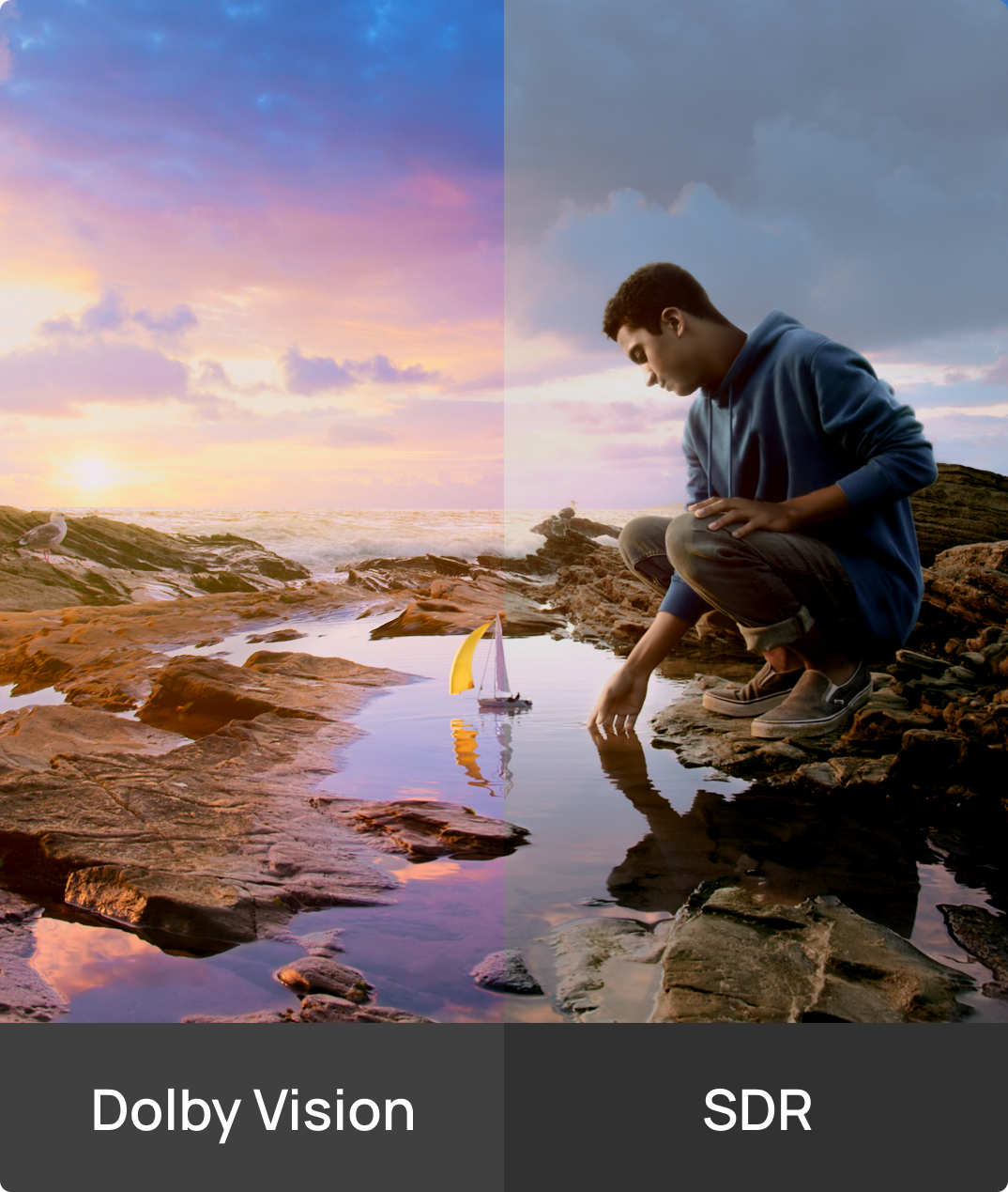 - 4K con Dolby Vision: déjate asombrar por una verdadera experiencia cinematográfica gracias al brillo sin precedentes, a la excepcional precisión del color y a la magnífica calidad de imagen de Dolby Vision.