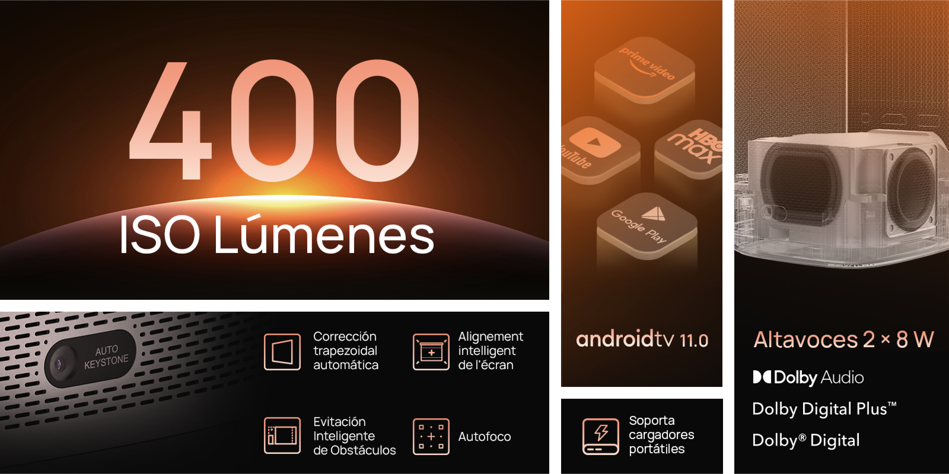 - Conecte y use: Permita que MoGo 2 haga el trabajo por usted en cuestión de segundos. Con nuestra tecnología ISA (Adaptación Inteligente de Pantalla) 1.0 líder del sector, podrá configurar el proyector de la forma más sencilla.