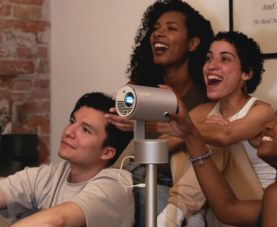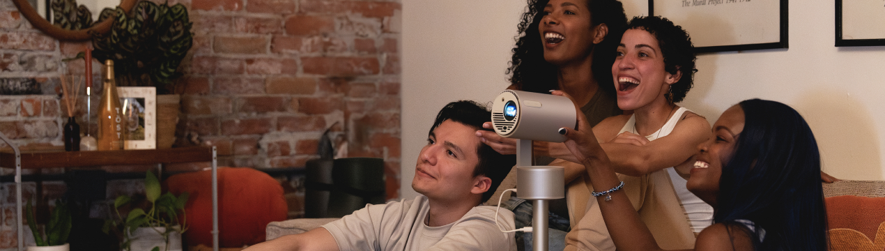 - Altavoces Dual Harman Kardon de 5W con Modo de Luz Ambiental: Impulsado por dos altavoces Harman Kardon de 5 vatios, el MoGo 3 Pro ofrece un sonido fuerte y nítido que llenará tu habitación o fiesta. Úsalo como altavoz o combínalo con el Modo de Luz Ambiental para añadir un toque divertido y pulsante a cualquier entorno.